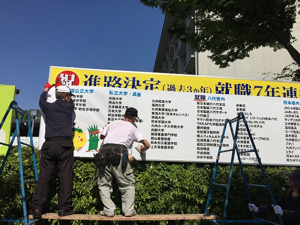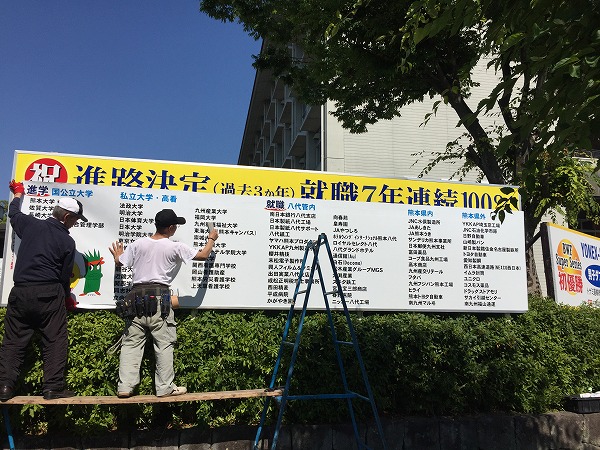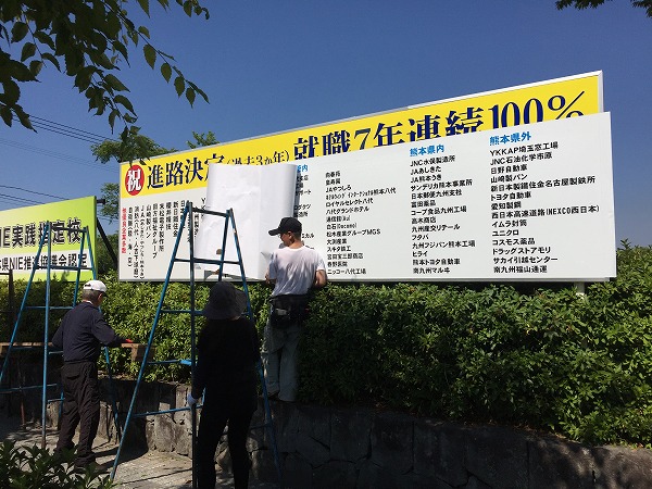 6月19日(日)珠算・電卓検定が終了し、午後4時頃、炎天下の中、看板の更新をしていただいておりました。