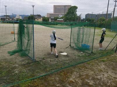 ソフトボール部は、バッティング練習をしていました。顧問の先生が投げる球を課題を見つけながら練習をしていました。明日は、熊本市で試合が行われます。
