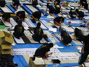 写真は、昨年の揮毫大会の様子です。壮観な眺めです。