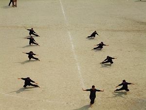 10月2日(日)に体育大会を開催します。9月27日(火)から終日体育大会の練習になりました。本日は午前中は団ごとに行進の練習、午後はフォークダンス、テント張りを行いました。