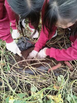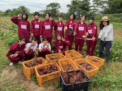 お芋を一から育てる大変さや愛情をもって一つ一つ丁寧に収穫をすることの大切さなどを教えていただきました。また、収穫したさつまいもはこれから熟成させ、私たちが考えた開発商品として、東高マーケットで販売予定です。ぜひ、おたのしみに。