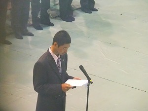 初めて聞く校歌です。新入生は歌詞を見ながら・・・