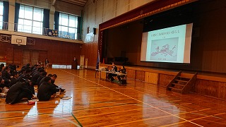 学校長講話。「締め」となる3学期の大切さ等のお話でした。