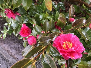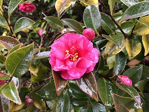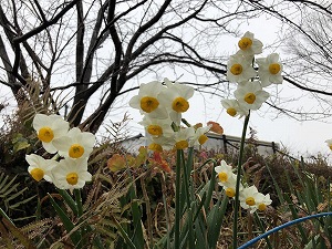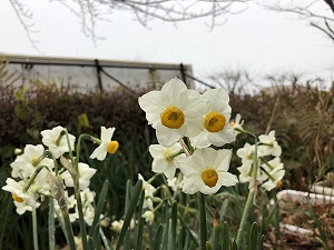 校庭には、厳冬の中、美しい草花が咲いています。