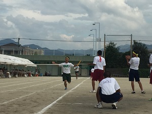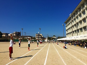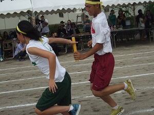 スポーツ交流では、バドミントンは圧勝でしたが、バレーボールでは、完敗です。」