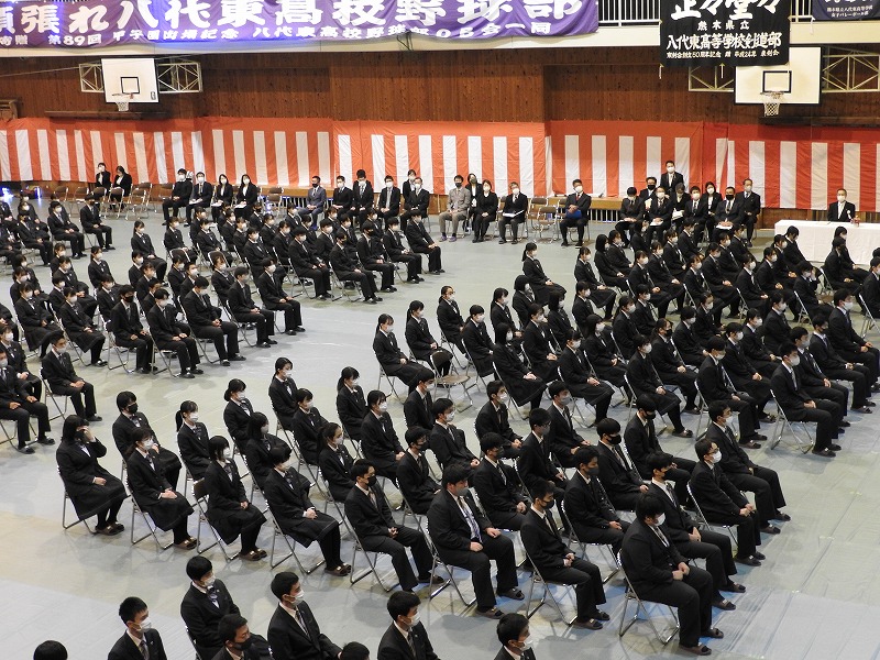 11月19日(金)に八代東高校創立70周年記念式典が行われました。校長先生をはじめ、同窓会会長、PTA会長、生徒会長からそれぞれ挨拶をいただき、「創立70周年を迎えるにあたって」のテーマで各科を代表して生徒が宣言をしました。式後は生徒が作成した記念動画をみんなで鑑賞しました。生徒主体の良い記念式典となりました。