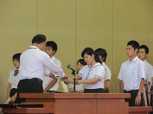生徒会長の浦田さんから、選手の皆さんに向けて激励の言葉が贈られました。
