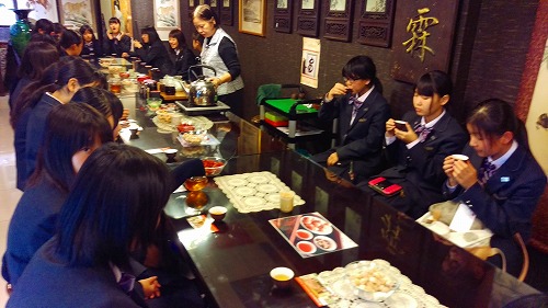「お茶体験をしました。お茶体験では、ウーロン茶の説明と試飲をしました。」