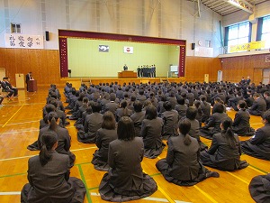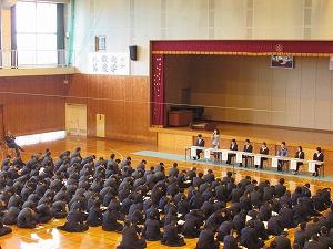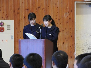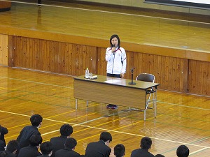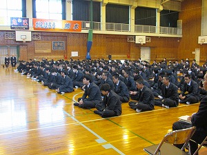 全国大会出場をたたえる挨拶と、バドミントン部の選手たちに激励の言葉が贈られました。
