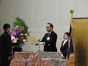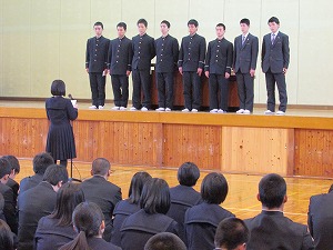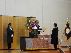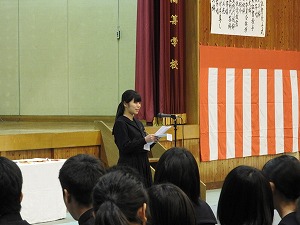 本校同窓会会長様によるご挨拶と、激励金授与がなされました。