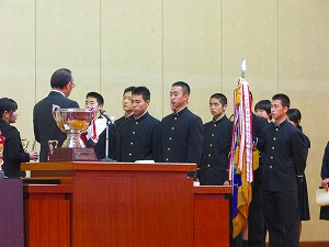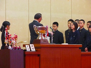 また、3位入賞までの間に、主将2年酒井裕匡君が10人抜きを達成、1年尾木倭斗君が敢闘賞で表彰を受けました。