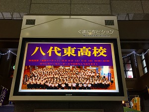 開会式を前に、「くまにちビジョン」に各校の紹介の画像が映し出されました。