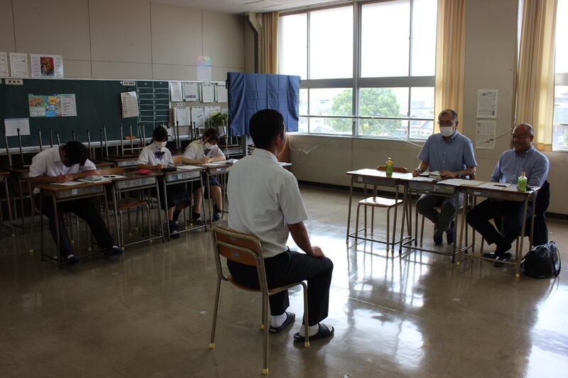 8月25日(金)本校で、熊本県中小企業家同友会のご支援をいただき、就職希望の3年生を対象に模擬面接を実施しました。熊本県中小企業家同友会からは、9人お越しいただき実際の就職面接を想定してご指導いただきました。
