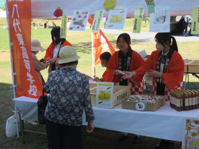10月28日(土)に「出張 東高マーケット」イオン八代ショッピングセンターにて、イオンマルシェに参加し、販売実習を行ってきました。