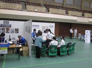 10月16日(月)5・6限の時間を利用して、1、2年生全員で「やつしろオシゴト探検フェア」(トヨオカ地建アリーナ)に行ってきました。八代管内を中心とした65事業所のブースで事業説明を受けたり、体験活動を行ったりしてきました。