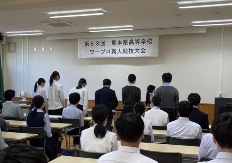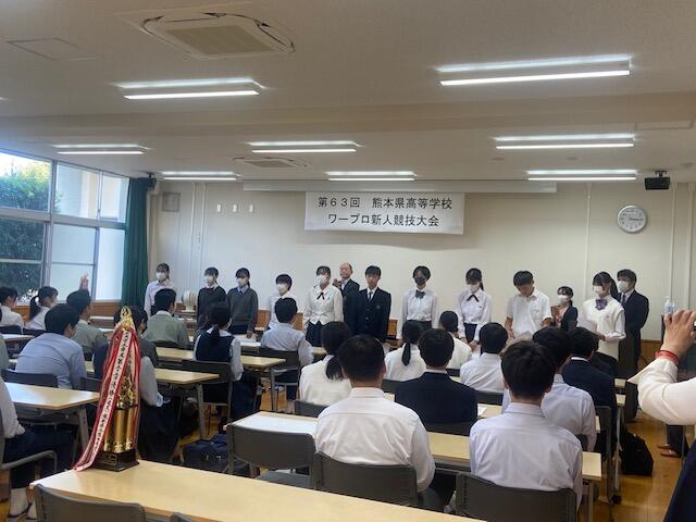 令和5年10月15日(日)熊本県立球磨中央高等学校で熊本県高等学校新人ワープロ競技大会が開催されました。本校ワープロ部が出場し、速度の部で、団体優勝、個人の部でも優勝することができました。