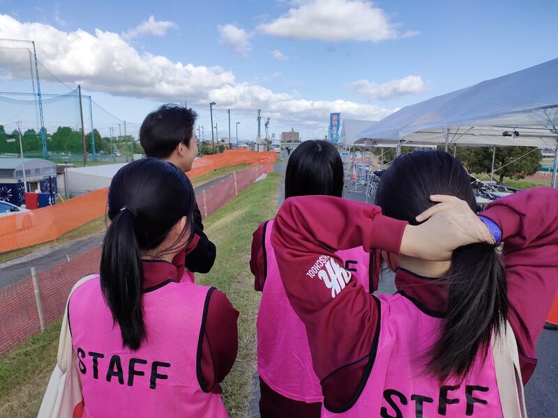 ツアー席やスポンサー席の設営を行いました。当日は風も吹く中でしたが、皆で協力して活動しました。