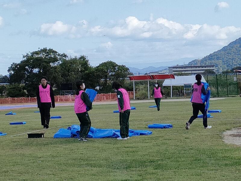 9月15日(金)から、えがお健康スタジアムで全九州新人陸上熊本県予選大会が行われ、本校陸上部が出場しました。