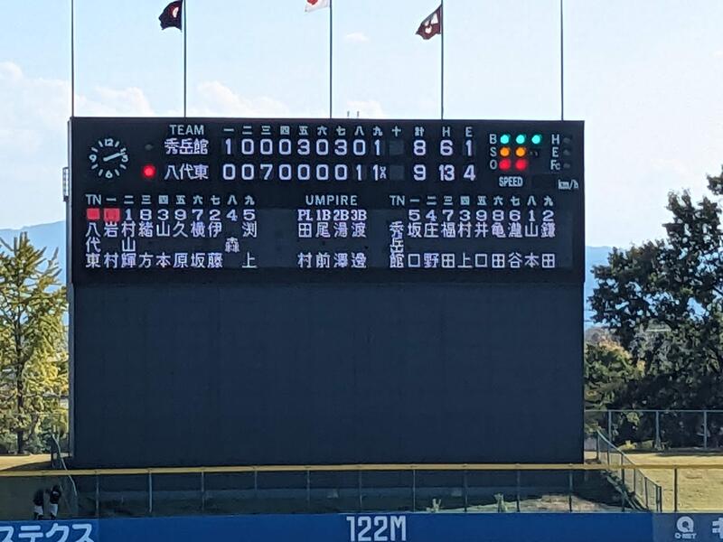11月5日に行われました、第2回城南地区高等学校野球秋季大会準決勝戦において本校野球部が9対8で勝利し、決勝に進出することになりました。決勝戦は11月26日に県営八代球場で予定されています。応援よろしくお願いします。
