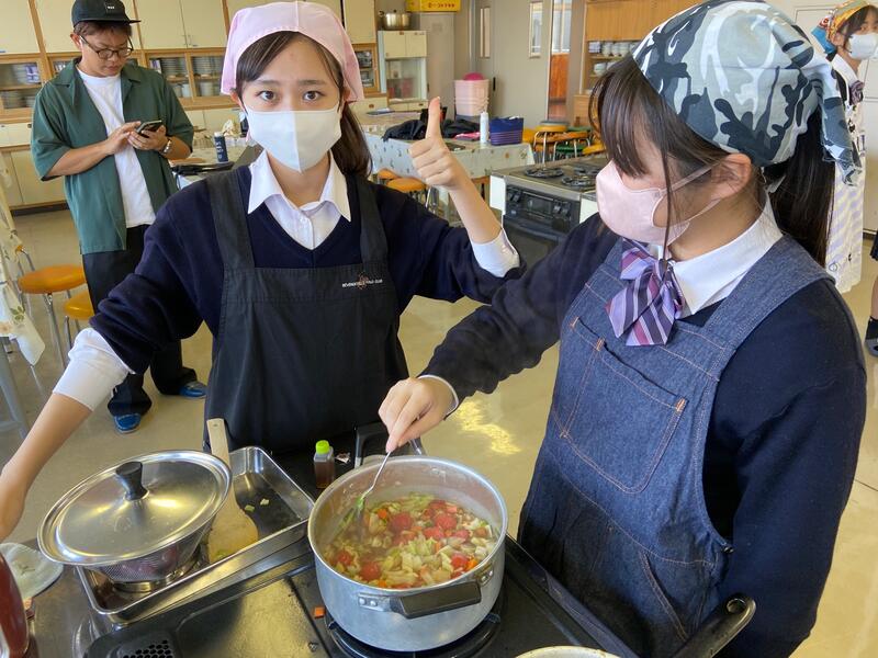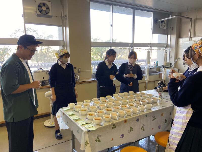 また、生徒が「規格外野菜を使ったスープができないか」とプレゼンテーションをさせていただき、八代のおいしいトマトを使ったスープをコラボ商品として開発することも快く引き受けてくださいました。11月7日にどのように商品化するか試作を行いました。何事も前向きに考えてくださり、的確なアドバイスをもらうことができました。もう少し試作を重ね東高マーケット限定の商品を提供できるように頑張ります。ぜひ、楽しみにしておいてください。