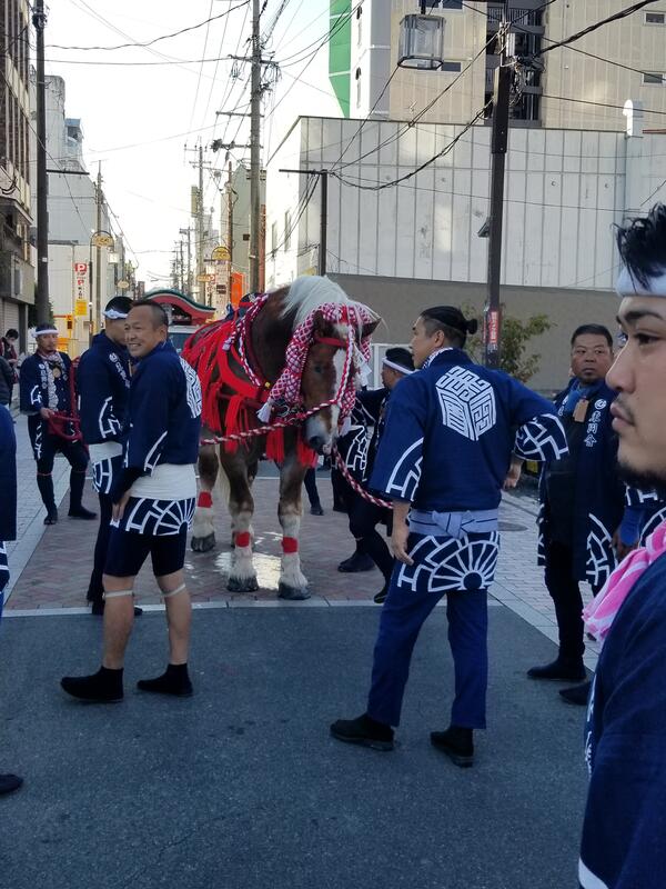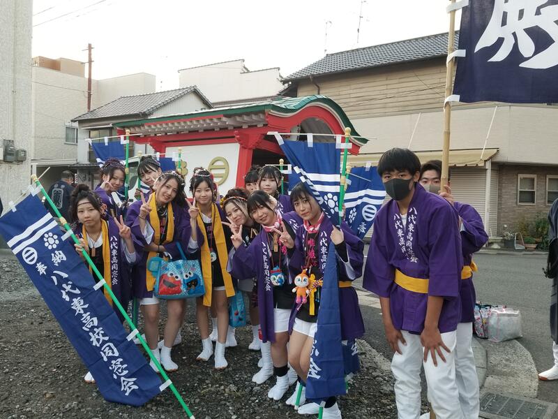 東高同窓会を中心としてPTA、職員、在校生も参加し、飾馬を妙見宮に奉納することができました。今年は、殿をつとめ東高らしく一団結した奉納、演舞をすることができました。沿道からの声援ありがとうございました。