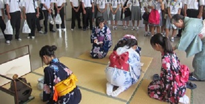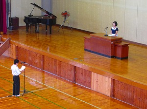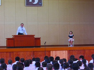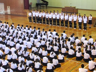 生徒全員、体育館と、グランドでは炎天下の中で、熱中症もなく、