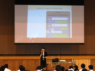 高尾様は高校生の生活に身近なLINEトラブルを例に挙げられ、映像等で分かりやすく説明をしていただきました。本校生徒も画面の向こう側にいる人への配慮と創造力を持って携帯端末を活用してほしいです。
