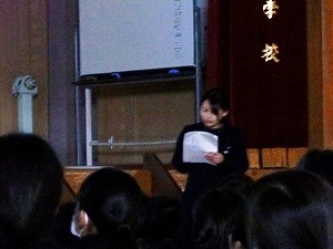 本日の発表者は、夏休みの宿題で全校生徒に「人権作文」が出され、