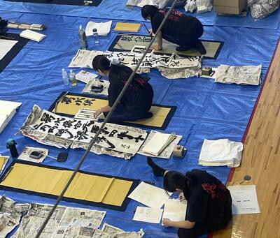 書道部が9月14日に行われた、第30回熊本県高等学校揮毫大会に参加しました。1年生が篆書・隷書・楷書部門で3位、行書・草書・仮名部門で3位、2年生が半切創作部門で秀作を受賞しました。