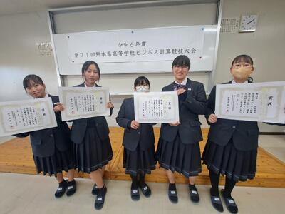 12月14日(土)、令和6年度第71回熊本県高等学校ビジネス計算競技大会に参加してきました。参加者は、1年生商業科の5名です。みんなリラックスした状態で大会に臨みました。