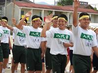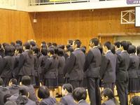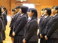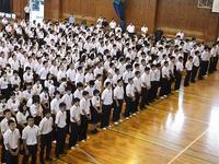 全校生徒の校歌斉唱で応援の気持ちを表しました