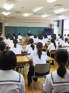 7月20日(水)に本校体育館にて「スマホ・ケータイ安全教室」を開催しました。講師に株式会社NTTドコモより高尾千寿様をお招きし、スマートフォンに関するルールやマナーの知識を深めました。
