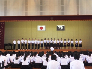 生徒全員、体育館と、グランドでは炎天下の中で、熱中症もなく、