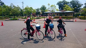 作業が終わったころ、手が足りないとSOSが・・・。 自転車を借りて、瓦の片付け作業へ。