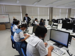 本校生徒とワープロ対決 華道部体験