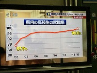 写真左側グラフ、県内就職者の割合は、バブル経済破綻以降