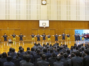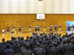 部活動紹介をした生徒たちが、前に出て校歌で、とても華やかでした。