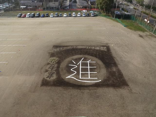例年、在校生有志が制作する、グラウンドの文字です。