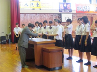 7月15日(金)に本校体育館にて7月の全校集会を行いました。集会の内容は表彰式とインターハイに出場する選手推戴式です。