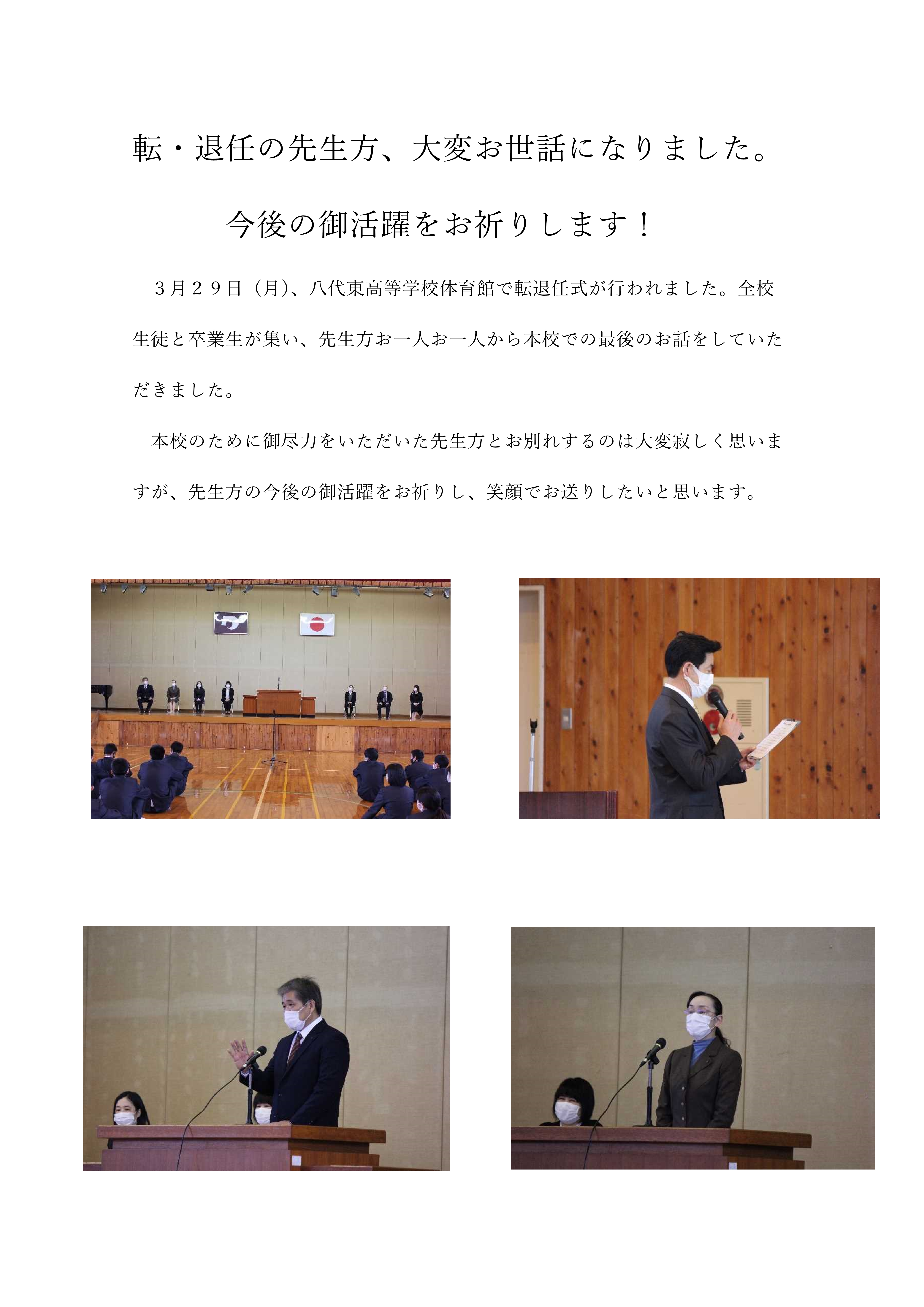 先生方、大変お世話になりました!(令和2年度転退任式)