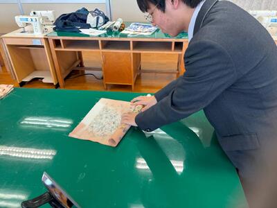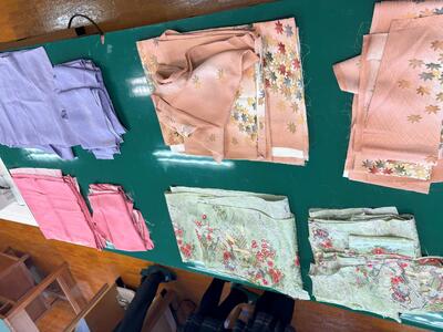 ほどかれた着物生地にアイロンをかける作業を担当しました。