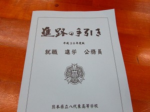 生徒たちは、「進路の手引き」に真剣にメモを取っていました。