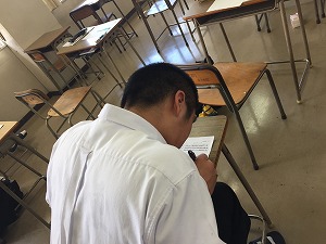 教室では、履歴書の志望動機を作成したり、進路先受験の筆記試験の勉強をしたりしています。