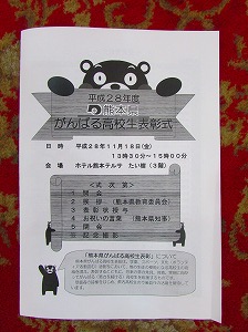 この「熊本県がんばる高校生表彰」は、蒲島知事がなられて始まったそうです。