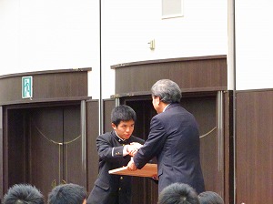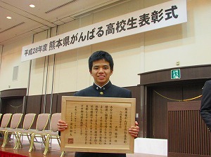 古閑 敬清 (こが たかずみ)君が表彰を受けました。