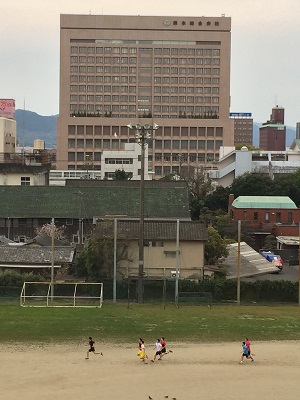 グランドを見たら、バドミントン部男子が練習をしていました。