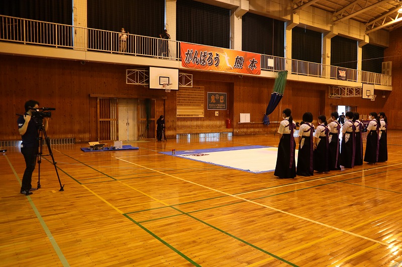 今回の取材は、中庭で行う予定でしたが、あいにくの天気のため体育館でのパフォーマンスとなりました。