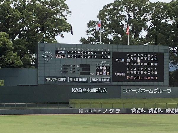 | 九州学院 | 0 | 0 | 0 | 1 | 0 | 0 | 0 | 1 | X | 2 |
