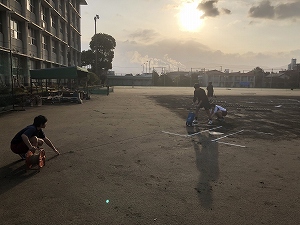 5階からは、1年生がソフトボール部の様子を見つめていました。