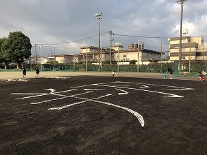 練習のすきまをぬって、一方では卒業生の保護者の駐車場を設営しながらの